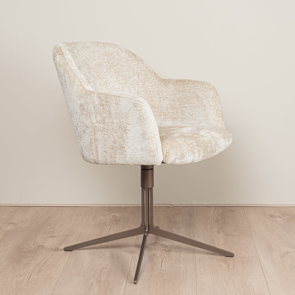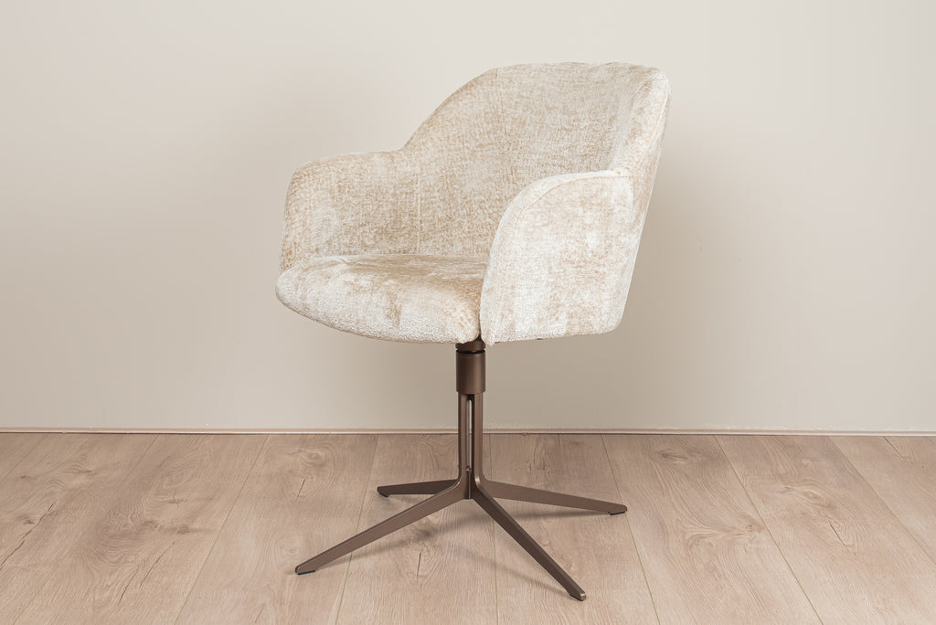 De stoel heeft een strakke en luxe uitstraling en door de ruime keuze in stoffen en kleuren kunt u de stoel gemakkelijk aan laten sluiten op alle verschillende interieurstijlen.