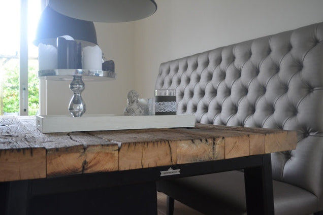 Deze eetkamerbank met hoge rugleuning word op maat voor u gemaakt in elke afmeting die u wenst.